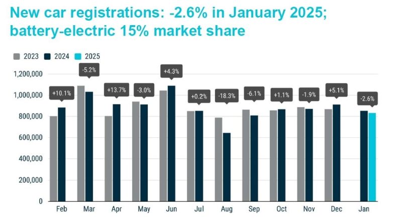 Las matriculaciones europeas caen un 2,6% en enero