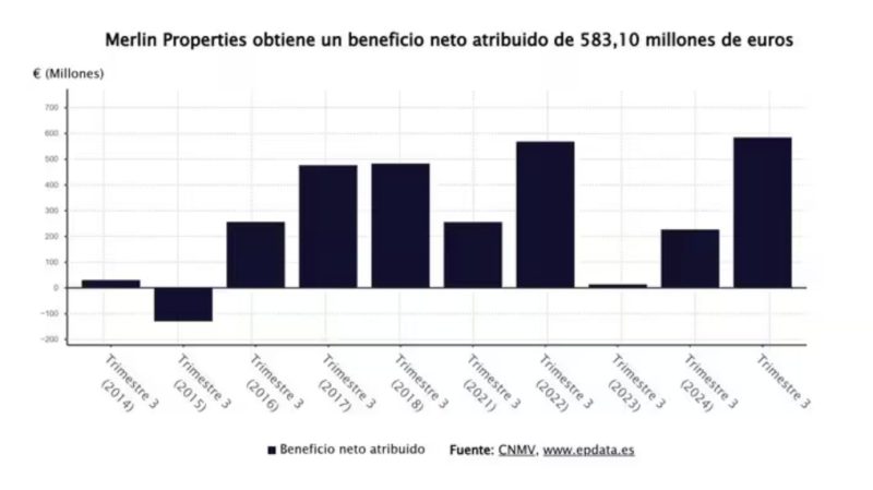Merlin Properties obtuvo un beneficio neto atribuido de 583,1 millones de euros en los primeros nueve meses del año, lo que supone multiplicar por más de dos (+158,8%) las ganancias registradas en el mismo periodo de 2024, según ha informado este viernes en un comunicado. Entre enero y septiembre de 2025, el beneficio operativo de […]
