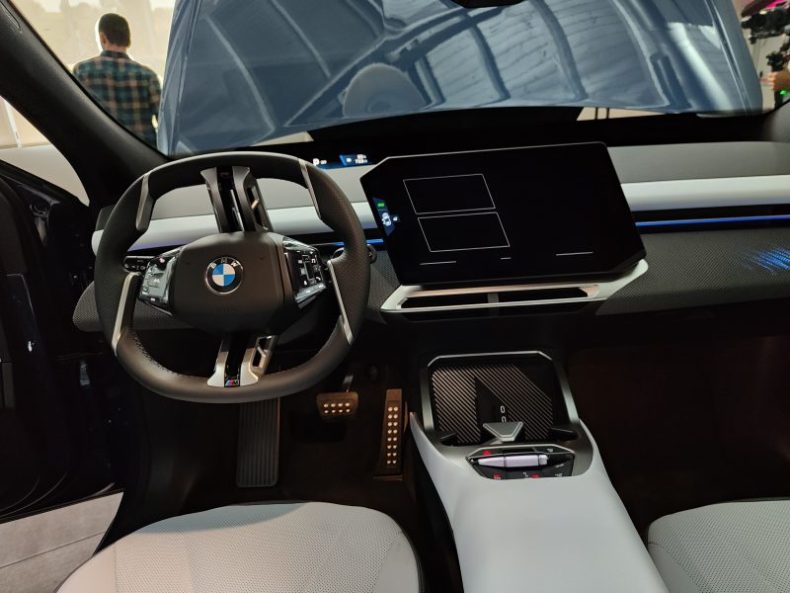 El exterior, explora una dirección más minimalista que la de los BMW anteriores, con menos líneas y burletes ocultos, así como manillas de los abrepuertas extraíbles. Mide casi 4’8 m de largo y poco más de 1’6 m de alto. Sin embargo, su volumen se compensa con las llantas de serie de 20 pulgadas y los detalles en negro brillante, mientras que la iluminación, como las franjas horizontales que recorren el frontal y las parrillas de riñón Iconic Glow, ahora más verticales, proporcionan los toques de luz.
