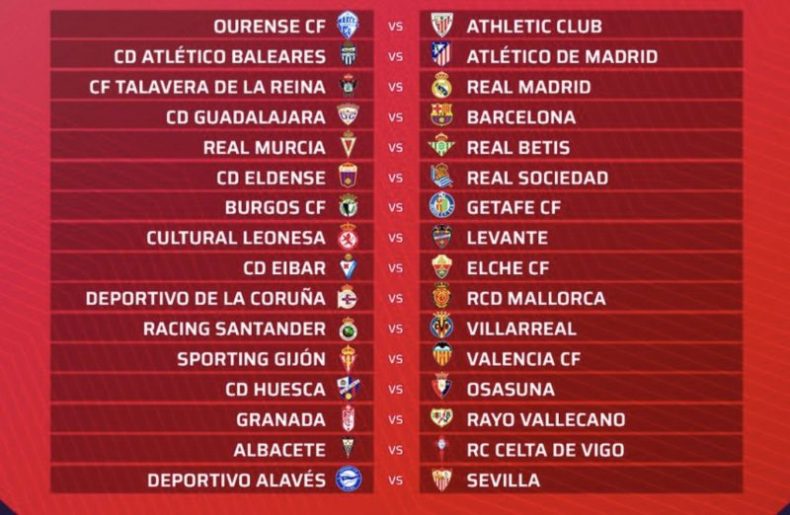 Guadalajara-Barça, Talavera-Real Madrid, Baleares-Atlético y Ourense-Athletic, en dieciseisavos de Copa